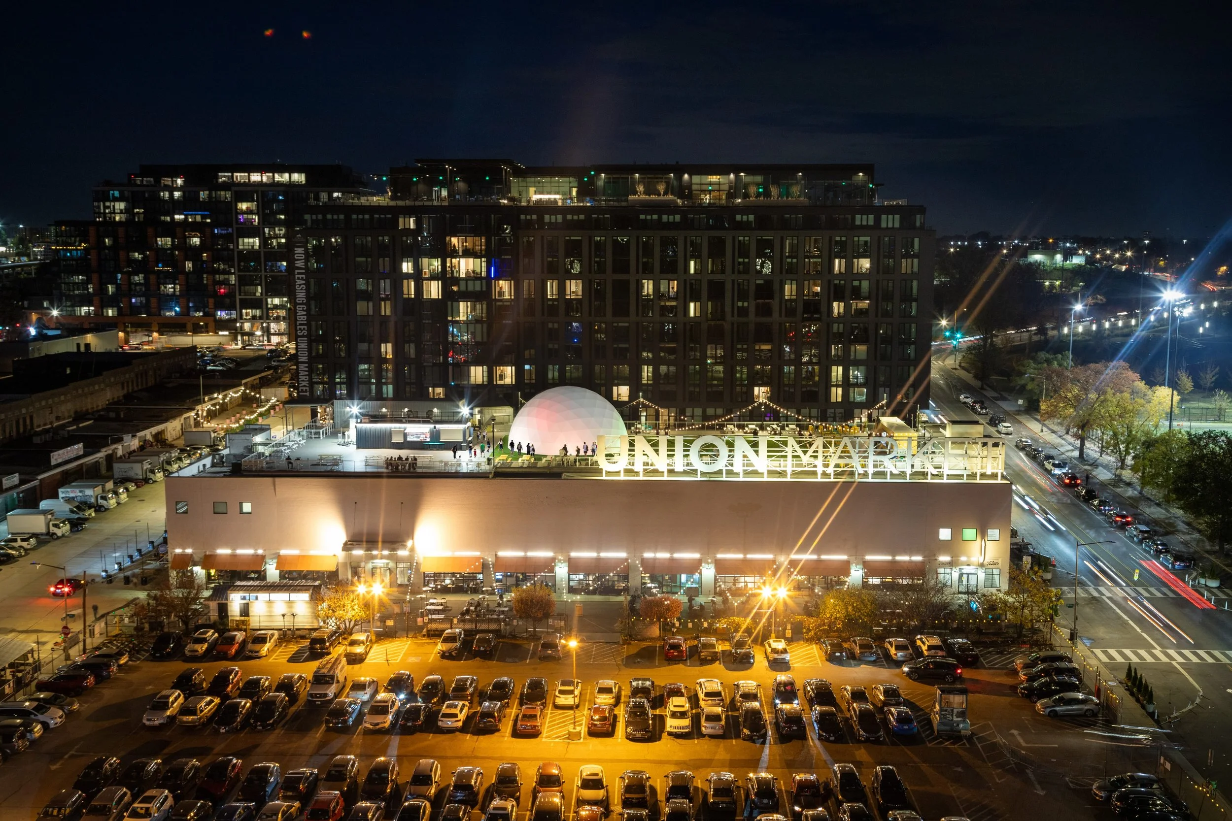 The Dome is located at Hi-Lawn, the rooftop above Union Market. Guests can access The Dome through the (ADA accessible) elevator at the front-east entrance to Union Market (near the corner of 6th St. NE & Neal Place).